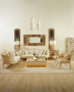 Perfect for modern homes, lounges, or upscale interiors, this sofa balances elegance and practicality. Its premium craftsmanship and striking finish make it ideal as a centerpiece for gatherings or as a signature décor element. Transform your living area into a luxurious haven with the Glitz Sofa — exclusively from KalaSeek.