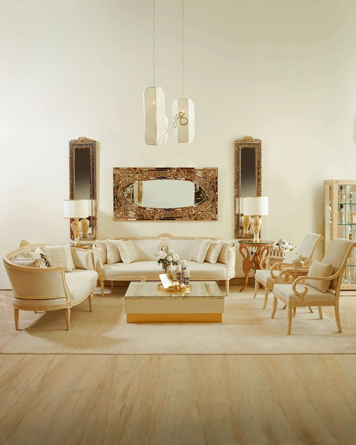 Shimmer with elegance — the Glitz Sofa in Motia Finish combines modern design with a touch of sparkling luxury.